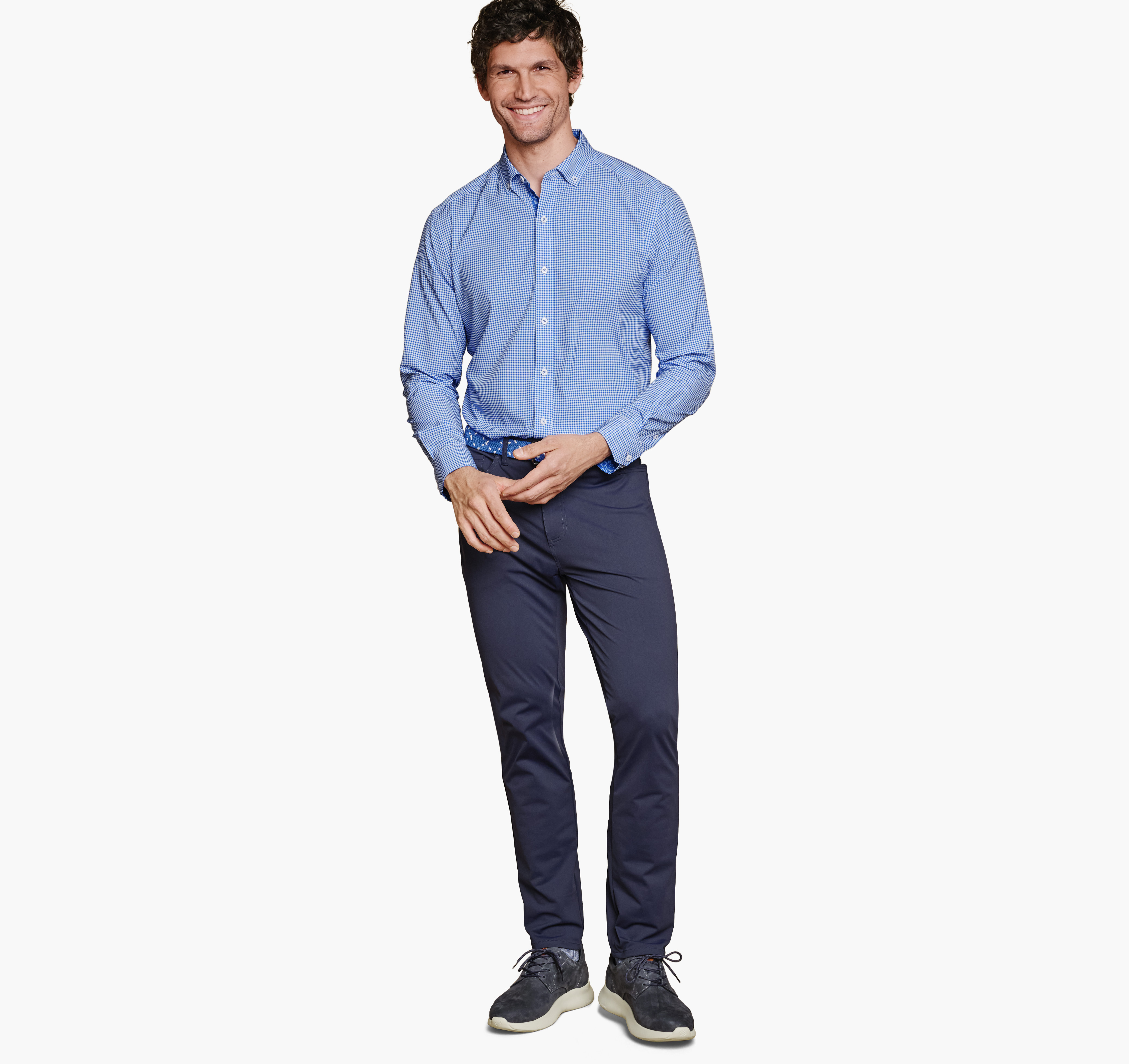 • Classic gingham in a woven version of our XC4® performance fabric with J&M Cool Degree™ technology: quick-drying, moisture-wicking, wrinkle-resistant four-way stretch for endless comfort.