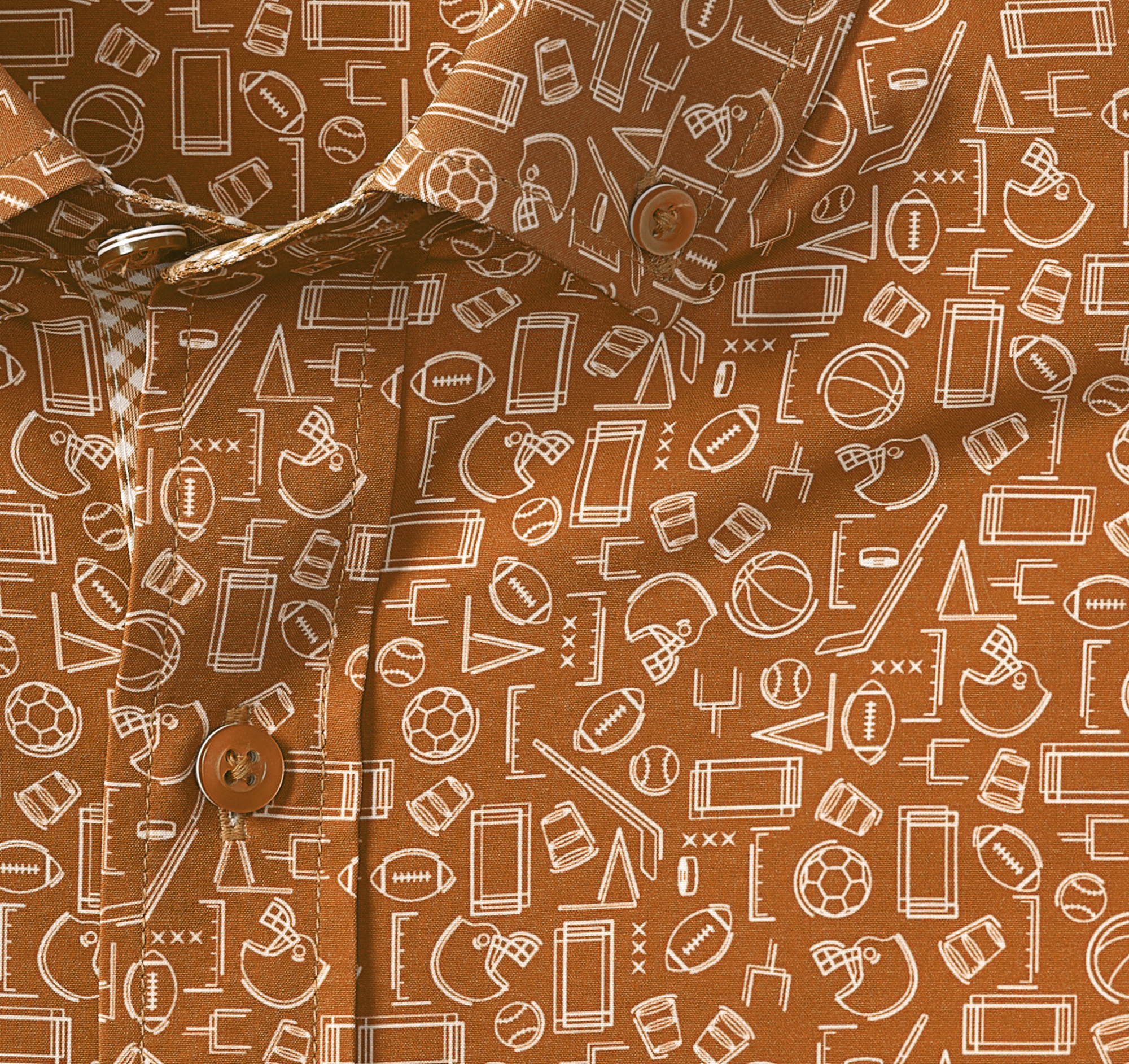 • A spirited collection that celebrates your favorite sports and team colors in a playful multi-sport print of familiar motifs.