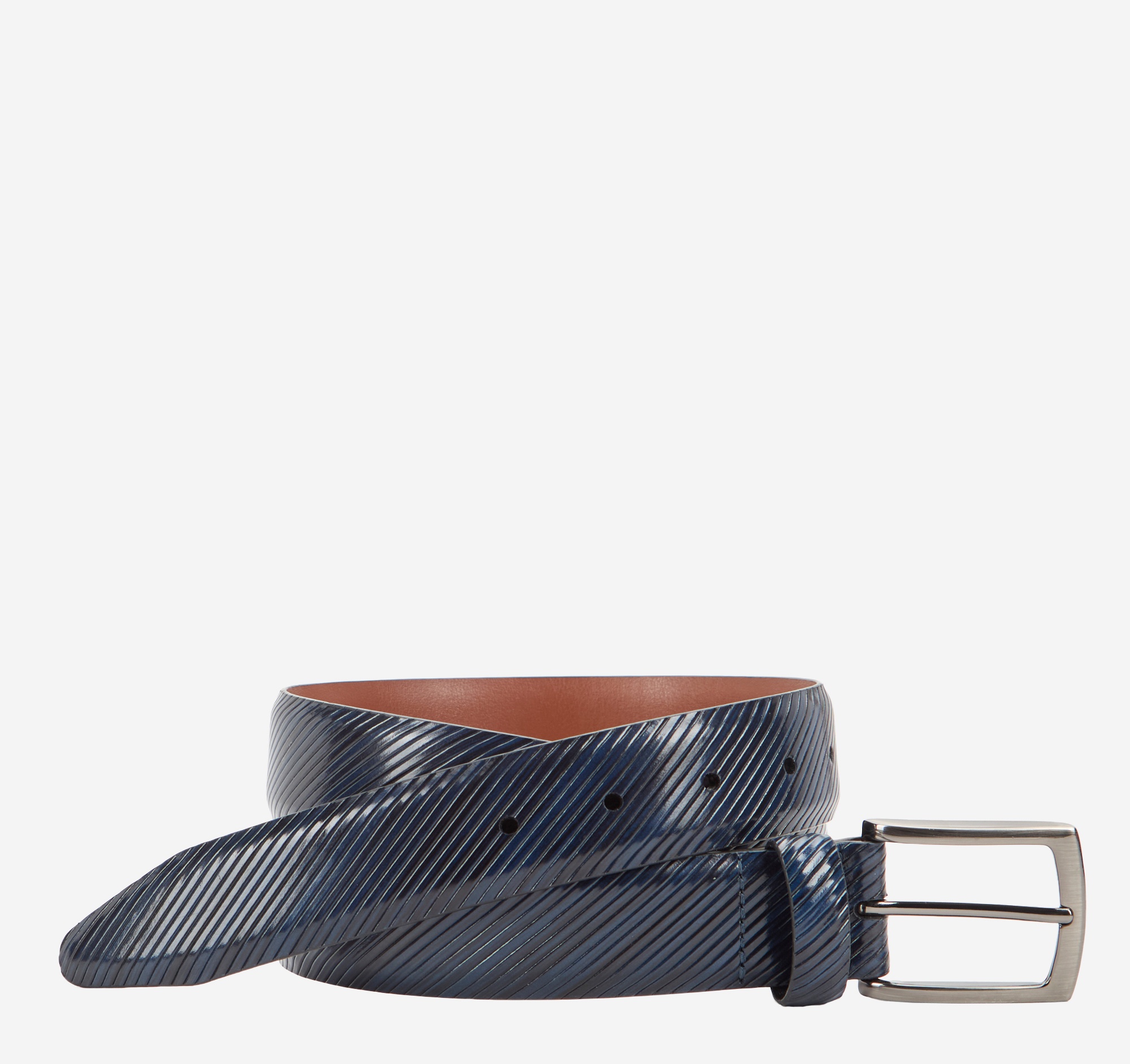 - Diagonal etching adds subtle texture to a belt for casual or dress wear.