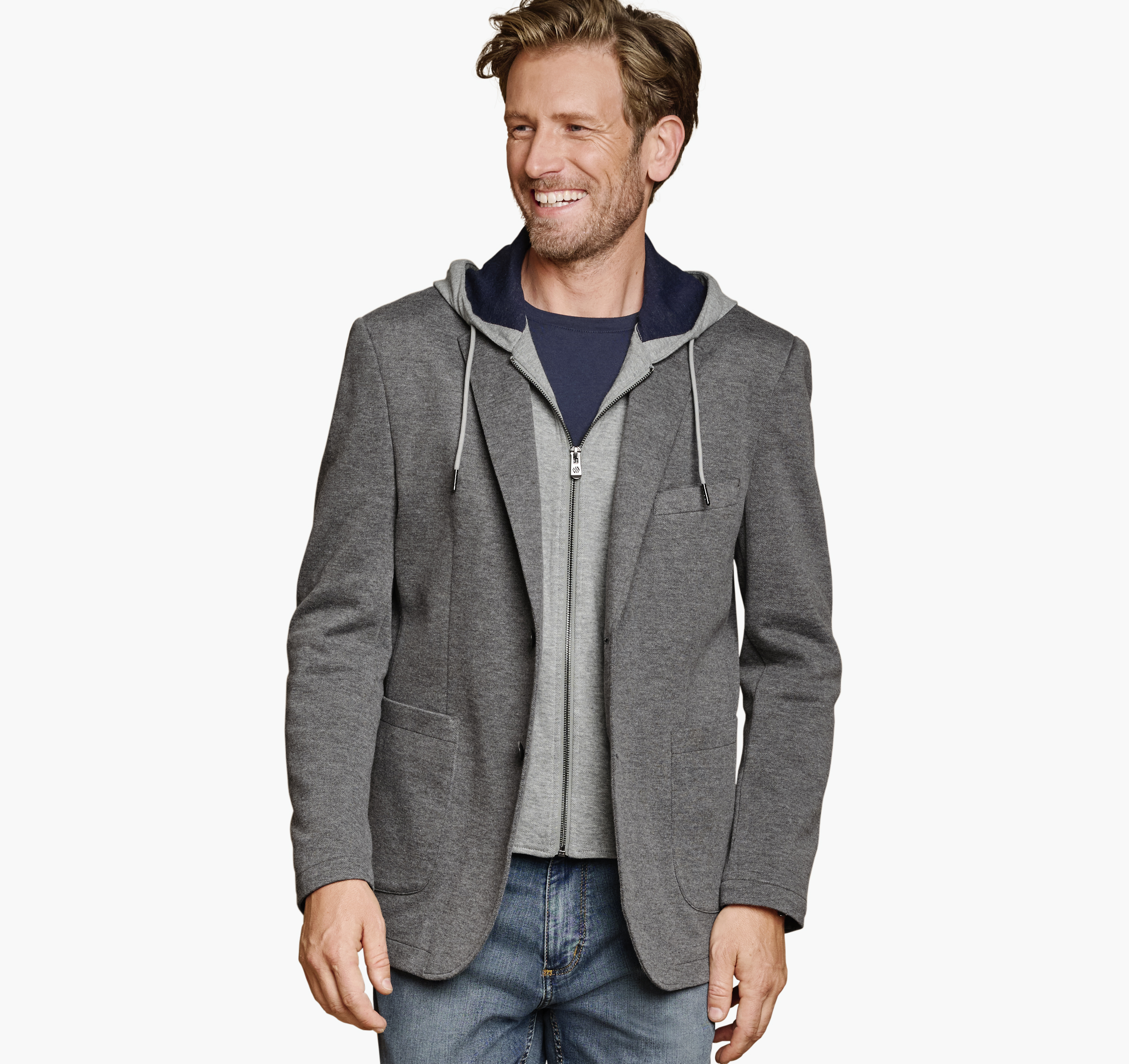 • We’ve taken our bestselling knit blazer and added a removable hooded bib for days when you need that extra bit of warmth but still want to look office-ready.