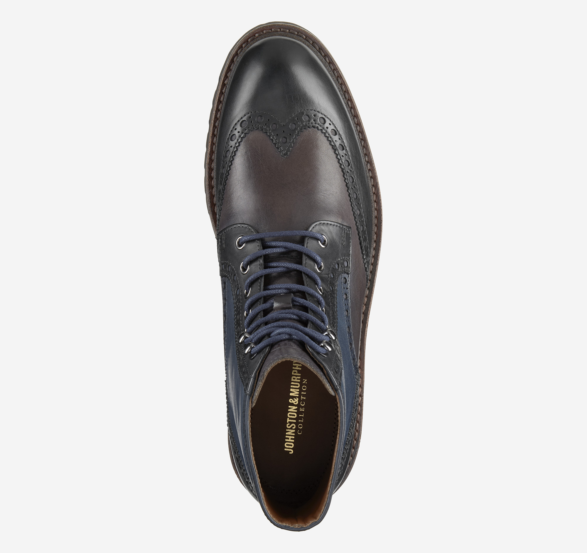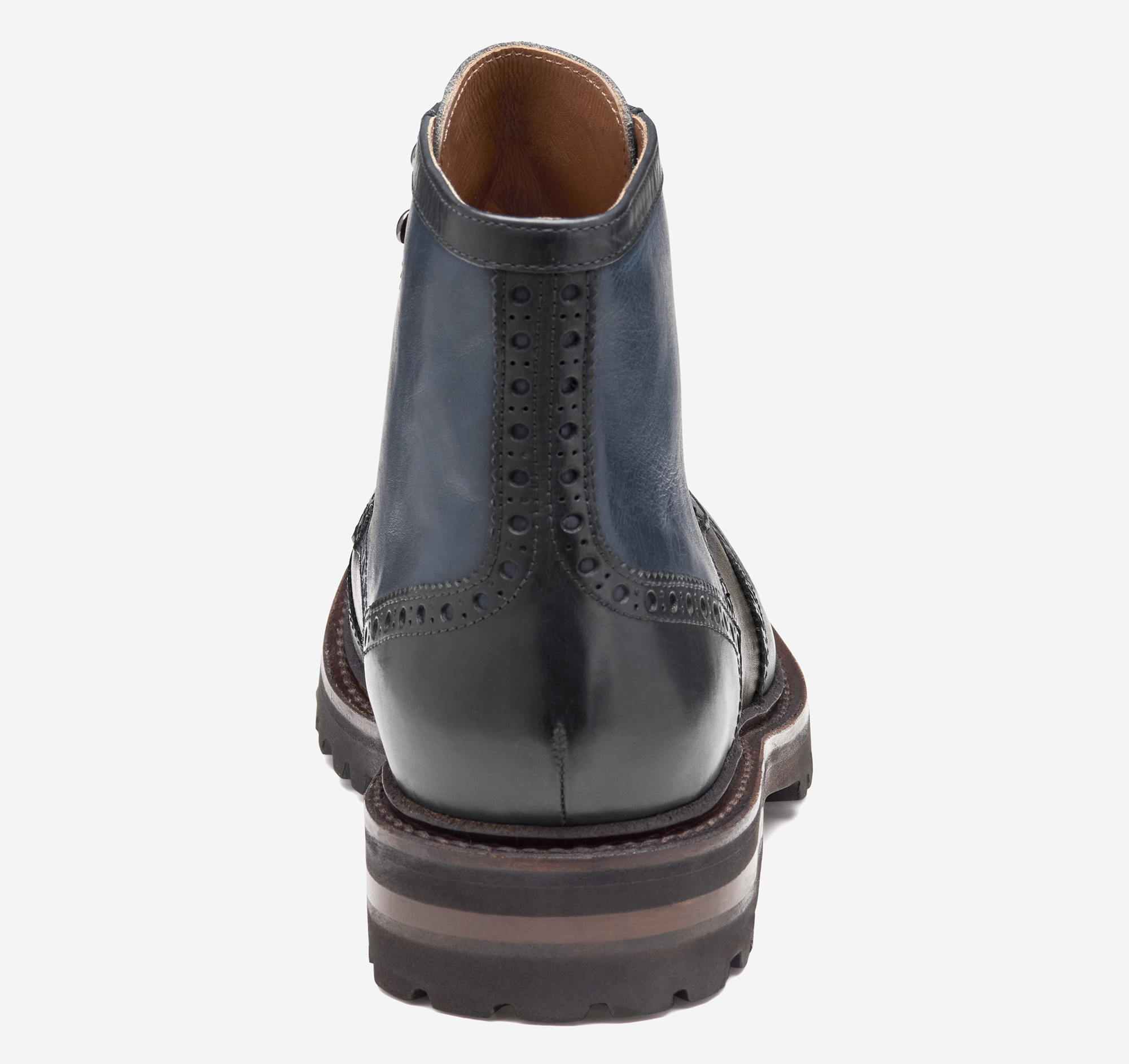 • Subtle or not-so-subtle colorblocked construction in leather with wingtip perfed detailing.