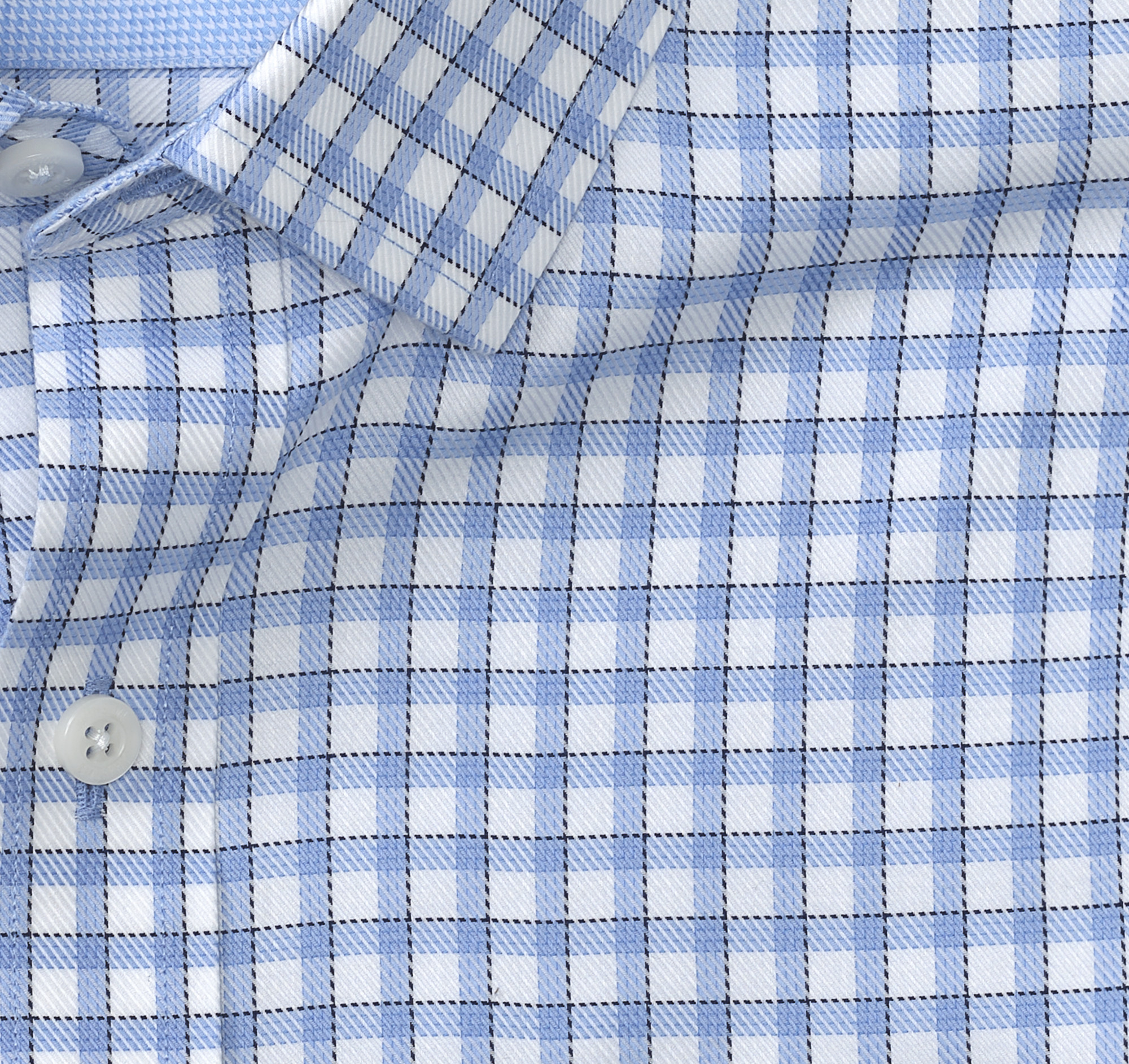 • Point collar with hidden buttons for stay-in-place smoothness.