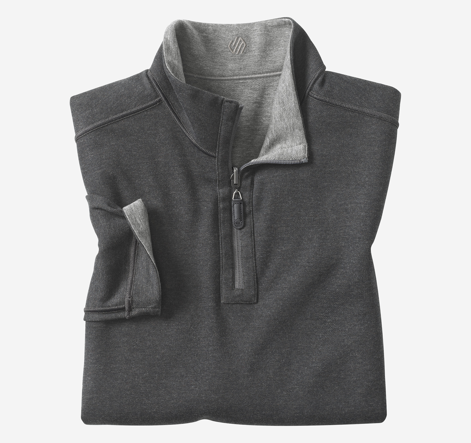 • Subtly textured piqué knit on one side, smooth jersey knit on the other.
