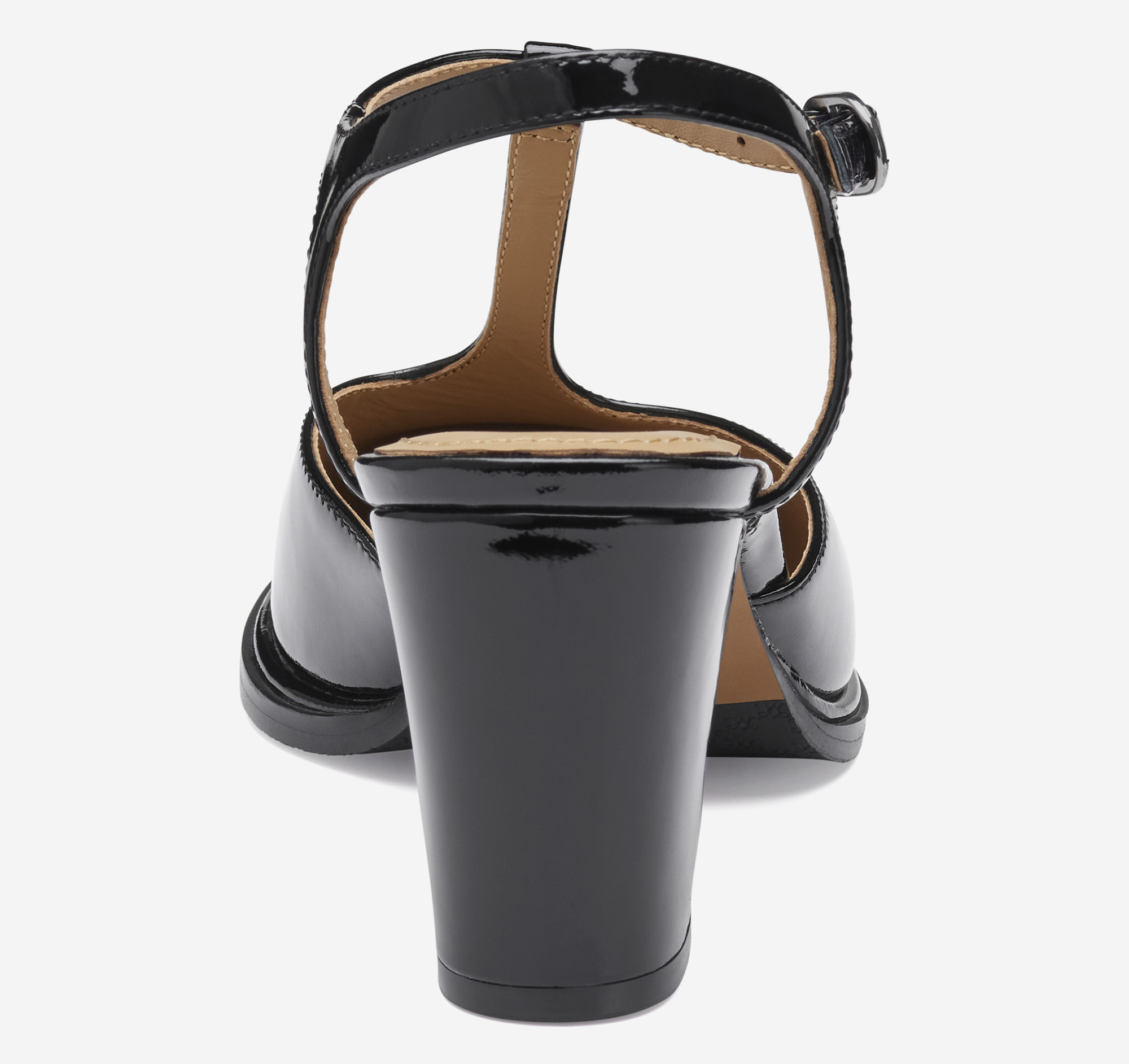 • A gracefully shaped, foot-flattering design in gleaming patent leather.